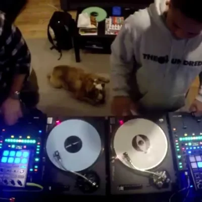 Un poco más allá de los platos y la mixer, Skratch Bastid y Dj Hedspin nos presentan este set controlando dos Rane 62 Mixers, dos Pioneer SP-1 y un bulldog inglés en los ladridos, mientras que Jon Riera detrás de la filmación.